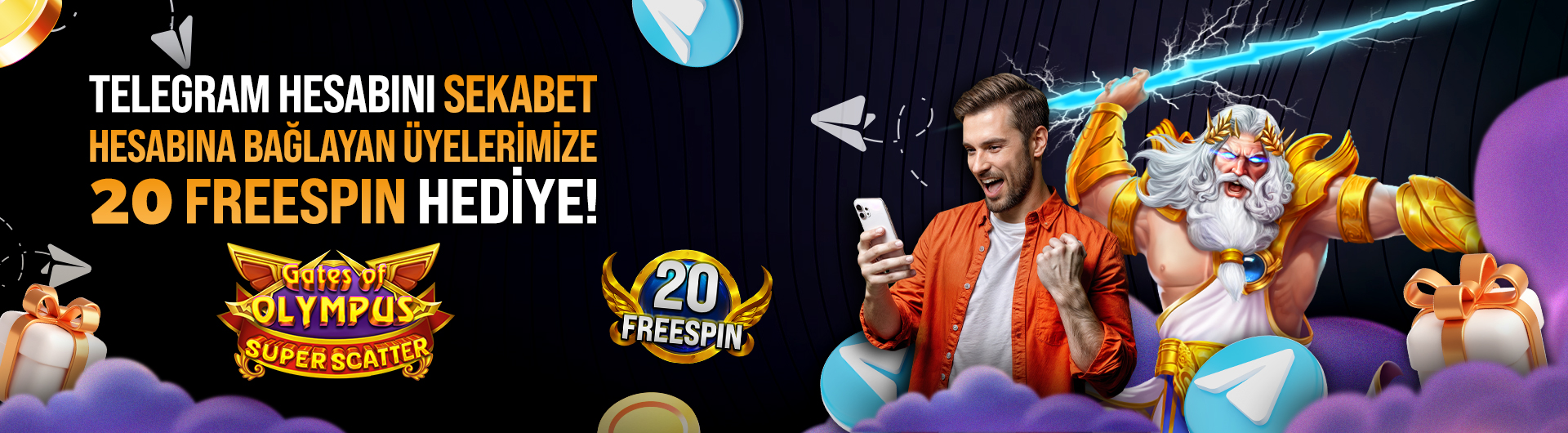 Telegram kanalına katıl, koşulları tamamla ve 20 freespin kazan!