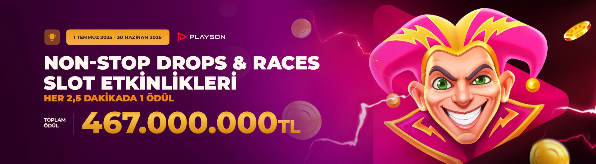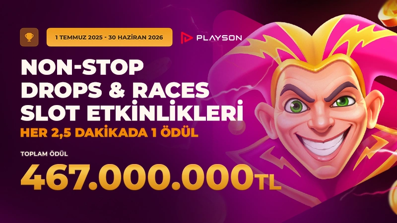 PLAYSON NON-STOP DROPS & RACES SLOT ETKİNLİKLERİ TOPLAM ÖDÜL 467.000.000 TL